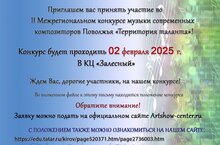 Приглашаем принять участие во II Открытом Межрегиональном конкурсе музыки современных композиторов Поволжья "Территория таланта", который состоится 02 февраля 2025 года в КЦ "Залесный".Также в рамках этого конкурса предлагаем принять участие в конкурсе методических материалов.