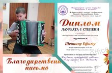 А победителем стал наш ученик народного отделения по классу баян Шевнин Ефим - Лауреат 1 степени
