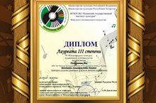 Серенеева Резиля Наиловна также получила диплом Лауреата I степени в номинации "Национальное сольное вокальное исполнительство" и благодарность за сотрудничество, деловые партнерские отношения и за участие в фестивале.