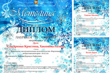 Поздравляем Белан Дарью, Тамгюл Малику и фортепианный ансамбль в составе Слесаренко Кристины и Хакимовой Ралины с присуждением звания Лауреатов 3 степени Всероссийского конкурс-фестиваля "Метелица"!