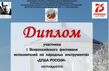По приглашению ДМШ № 3 им. С.С. Прокофьева (г. Орел) учащиеся отделения народных инструментов приняли участие в 1 Всероссийском фестивале исполнителей на народных инструментах "ДУША РОССИИ".