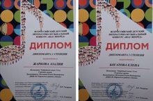 Поздравляем Богатову Елену и Жаркову Азалию - дипломантов 1 степени Всероссийского детского литературно-музыкального конкурса "Шаг вперед".