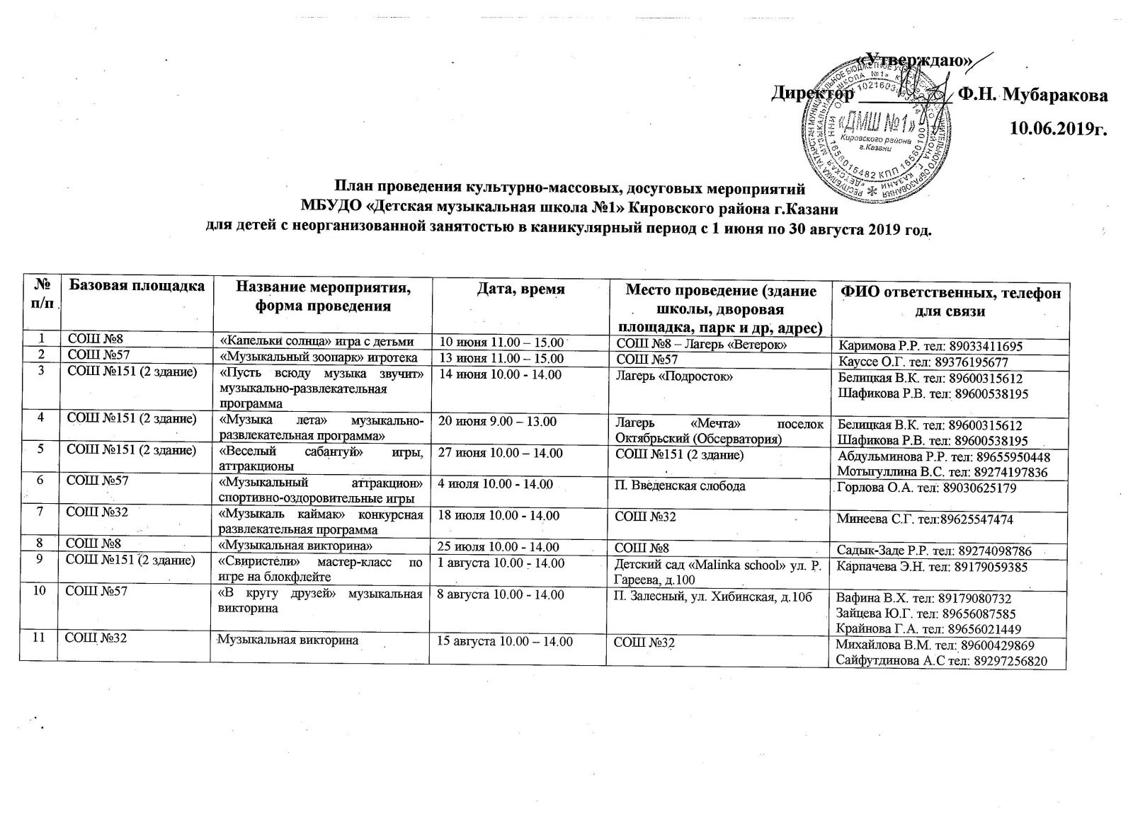 Работа летнего лагеря 31.08.2019