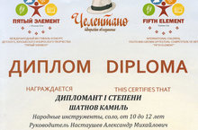 С 18 по 20 мая 2018 года творческое объединение "Челентано" провело в Йошкар-Оле Международный фестиваль-конкурс детского, юношеского и взрослого творчества "Пятый элемент". В конкурсе принял участие ученик 3 класса нашей школы Шатнов Камиль (аккордеон).