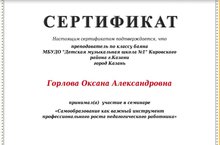 Преподаватель Горлова Оксана Александровна приняла участие во Всероссийском семинаре "Самообразование как важный инструмент профессионального роста педагогического работника".