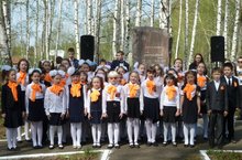 3 мая хор учащихся младших классов "Улыбка" (руководитель - Мубаракова Флюра Наильевна) выступил на митинге у памятного знака в честь города-героя Новороссийска.