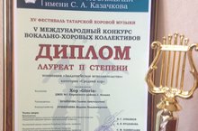 Поздравляем хоровой коллектив "Gloria" с блестящей победой на V Международном конкурсе вокально-хоровых коллективов, который проводился в рамках XXI Казанской Хоровой Ассамблеи и XV Фестиваля татарской хоровой музыки Казанской государственной консерваторией имени Н.Г.Жиганова при поддержке Министерства культуры Республики Татарстан.