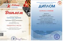 Поздравляем учеников Галины Анатольевны КрайновойГусманову Аделину и Сабирова Марка с убедительными победами на конкурсах!