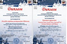 Ансамбль народных инструментов «Шатлык»и ансамбль кураистов «Сэйлэн» каждый год принимают участие во Всероссийском фестивале исполнителей на народных инструментах «Душа России» (г. Орёл).
