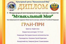 ГРАН-ПРИ Международного многожанрового конкурса культуры и искусства "Музыкальный мир" у нашего духового оркестра "КаДетство"! Так держать!!!