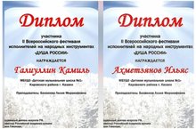 - Гильмутдинова Лиана, Хуснутдинова Аделя - дипломанты 1 степени.