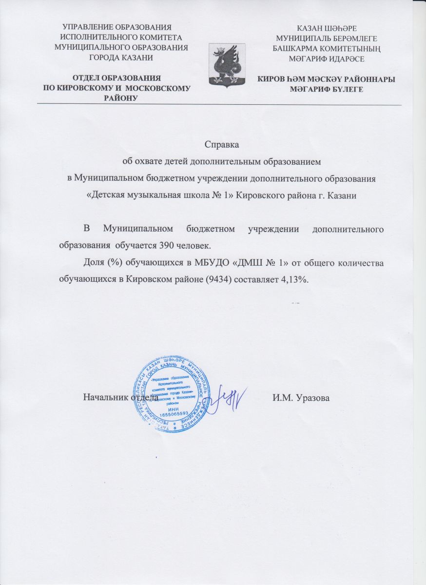 Муниципальное бюджетное учреждение дополнительного образования «Детская музыкальная школа №1" Кировского района» г. Казани