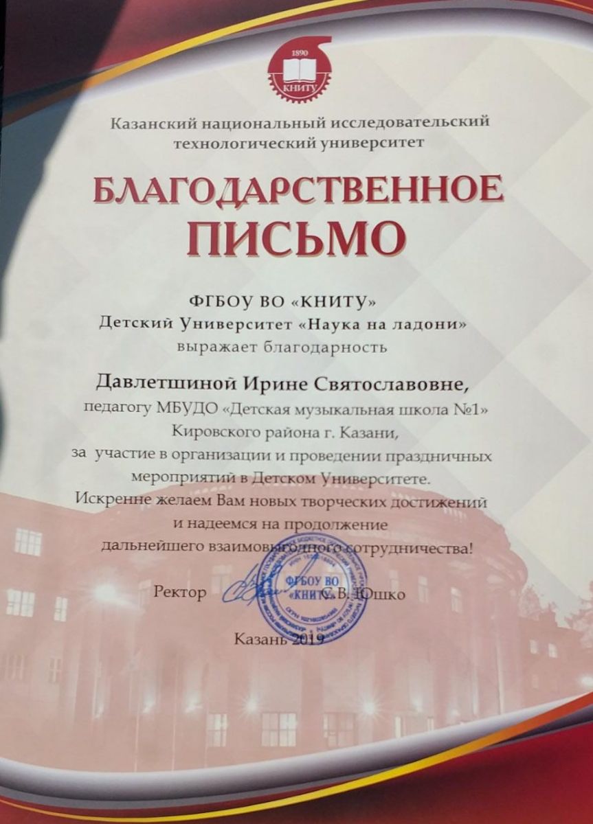 Муниципальное бюджетное учреждение дополнительного образования «Детская музыкальная школа №1" Кировского района» г. Казани