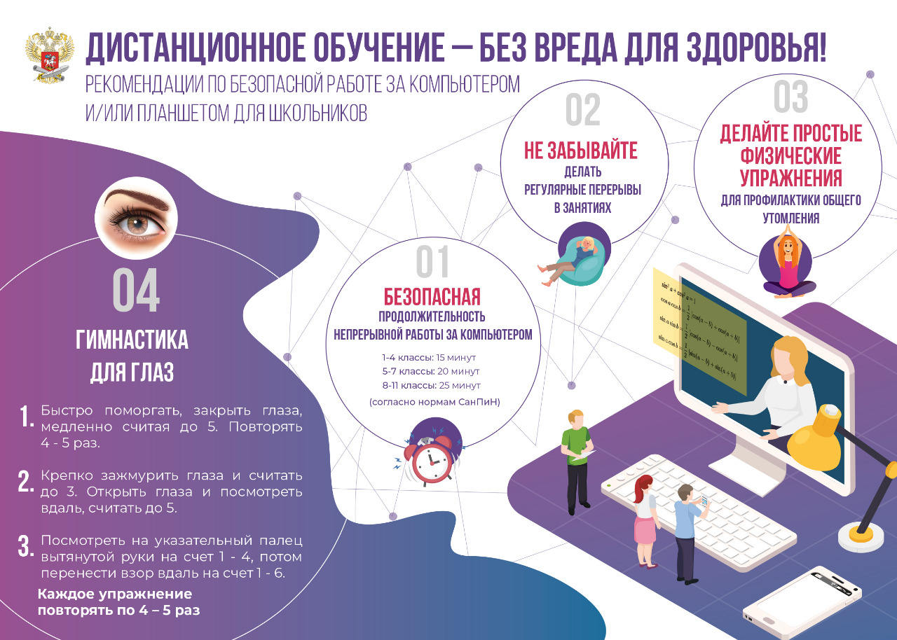Рекомендации по безопасной работе за компьютером или планшетом для школьников