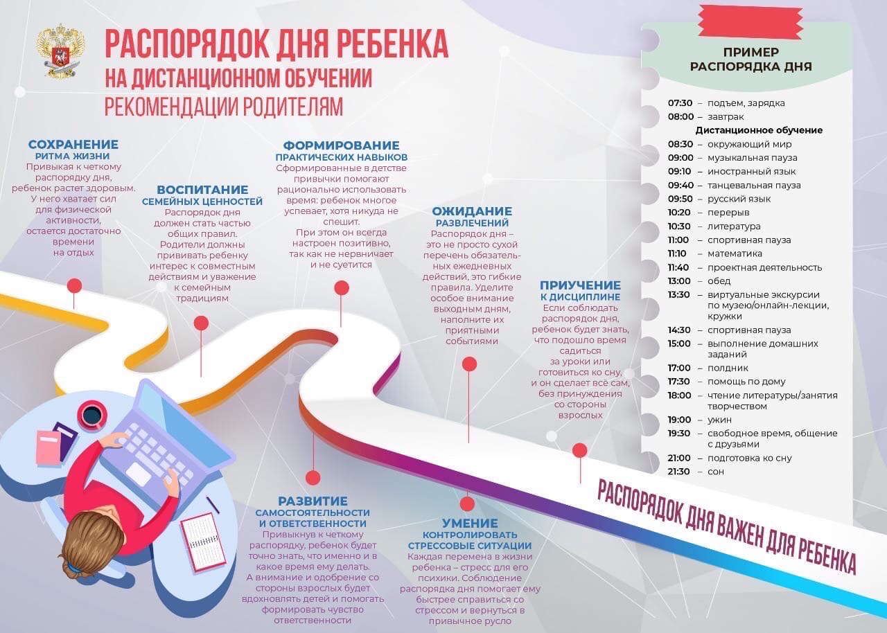 Рекомендации родителям. Распорядок дня ребенка на дистанционном обучении