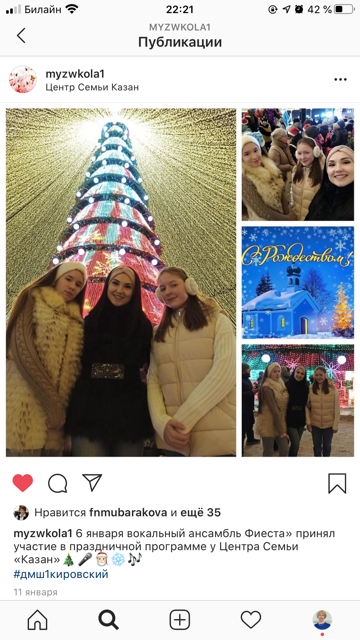 4. Участие в новогодней праздничной прграмме у Центра Семьи Казан 06.01.2020. Выступление вокального ансамбля "Фиеста".