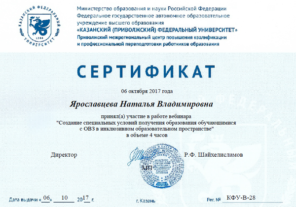 3. Ярославцева Н.В. приняла участие в вебинаре "Реализация адаптированных основных образовательных программ для детей с ОВЗ"