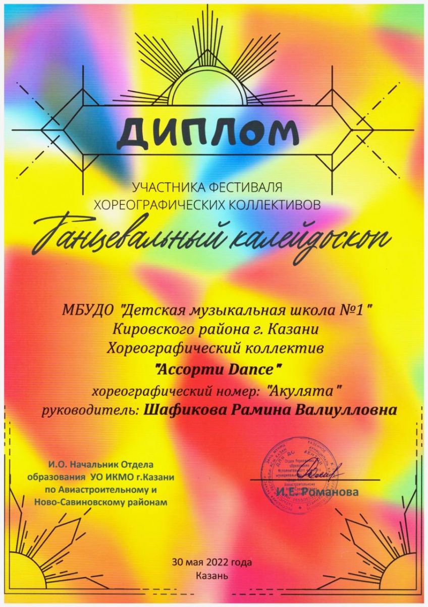 19. Фестиваль хореографических коллективов "Танцевальный калейдоскоп". 30.05.2022, КДК им. В.И. Ленина. /Диплом ФОТО