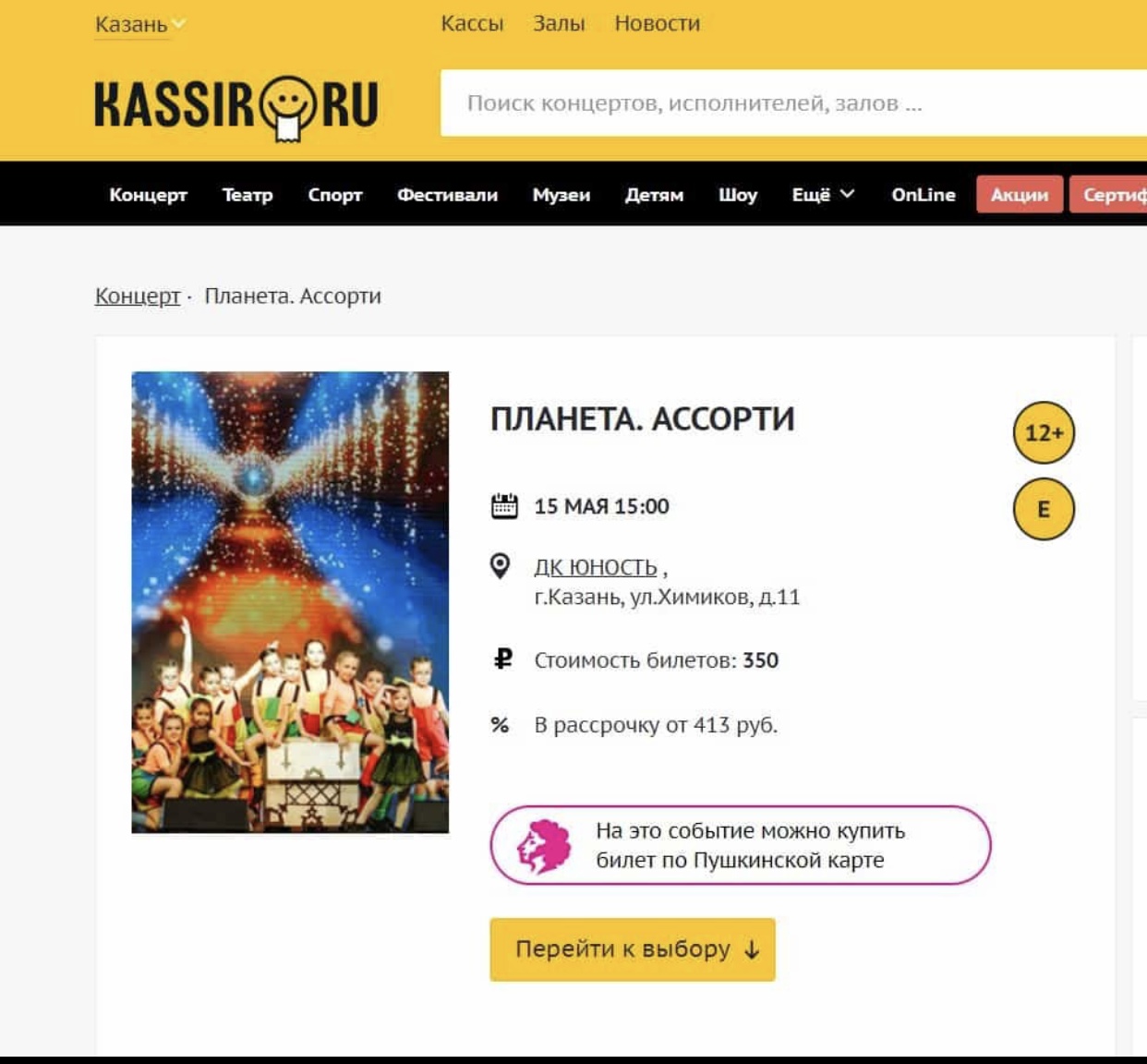 16. "Планета Ассорти". Концерт хореографического коллектива "Ассорти-данс". Место проведения ДК Юность (Пушкинская карта). 15.05.2022 Афиша ФОТО 1 ФОТО 2