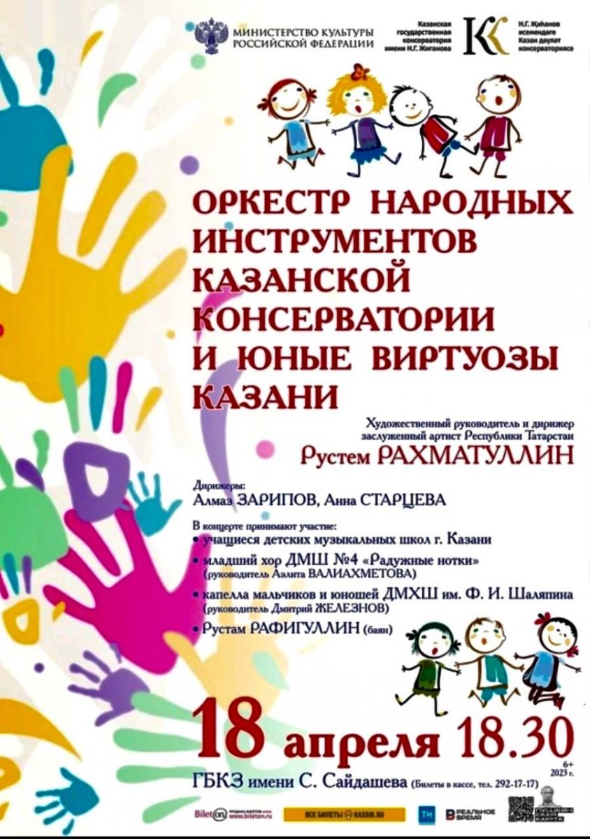 10. "Юные виртуозы Казани". Концерт оркестра народных инструментов КГК им. Н.Г. Жиганова и учащихся ДМШ и ДШИ. МЕсто проведения - ГБКЗ им. С. Сайдашева. 18.04.2023. Участники - Шатнов Камиль, Шатнова София.