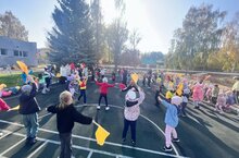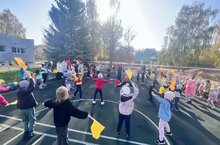 Сегодня на прогулке ребята подготовительных к школе групп приняли участие в физкультурно-музыкальном досуге «Клад осени». Дети совершенствовали двигательные навыки в подвижных играх, пели, танцевали, учились взаимодействовать в команде, закрепили знания об осени, а в конце получили вкусное угощение.