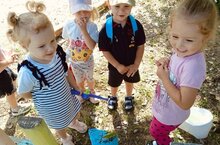 Дети второй младшей группы 9 на прогулке наблюдали за кузнечиком. -