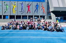 На стадионе ребята с большим удовольствием сделали ритмическую зарядку, организованно пробежали по беговым дорожкам, поиграли в футбол. А в завершении все получили медали на память.