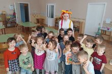 Сегодня в средней группе 10 было развлечение ко дню смеха. С целью воспитания у детей чувства юмора. В гостях был скоморох с веселыми конкурсами.