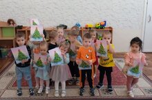 Дети 8 группы рисовали на ёлочке разноцветные шарики.