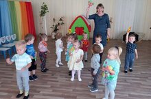 Малыши из первой младшей группы 2 уже привыкли к детскому саду и с удовольствием посещают музыкальные занятия. Играют погремушками в такт музыке, поют и танцуют.