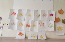 Одним из чудесных явлений осени является листопад. Ребята средней группы 10 наблюдали на прогулке, как осенние листья красиво и плавно кружась, падали на землю. Вернувшись в группу, они решили отразить свои впечатления на бумаге. Вместе с воспитателем дети наносили краску на собранные листья клёна затем прикладывали их обратной стороной к рисунку. Получились красивые разноцветные отпечатки.