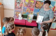 К Пушкинскому дню в России и к дню русского языка в средней группе 7 была организована выставка по произведениям А. С. Пушкина. Дети познакомились с творчеством А. С. Пушкина: воспитатели читали детям сказки, стихи поэта рассматривали иллюстрации к сказкам, познакомили с жизнью и смертью поэта.