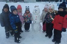 Пусть стоит теперь до лета!Такого красивого снеговика слепили ребята средней группы №4 сегодня на прогулке.