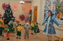 Вместе с детьми она водила хороводы вокруг нарядной ёлочки, пела новогодние песенки, играла с детками в снежки и погремушки. Зал наполнился счастливым смехом и восторгом. -