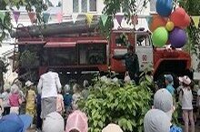 Сегодня в детский сад прибыли пожарные на пожарной машине. Многие увидели ее так близко первый раз. Они с интересом ее рассматривали и слушали рассказ пожарных о том, чем укомплектована машина, какими средствами пожарные пользуются при тушении огня, увидели специальную одежду пожарного. Дети заглянули и посидели в кабине пожарной машины. Дети были в восторге!