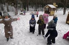 Дети всех возрастных групп очень весело проводят время на прогулках. Играют в подвижные игры, катают снеговиков. Мы любим зиму!