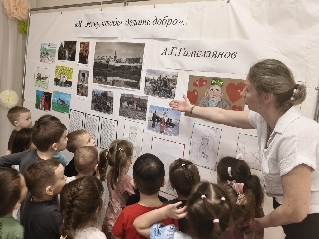 Для воспитанников был проведён цикл бесед, в ходе которых ребята узнали, кто такие меценаты, каким был Асгат Галимзянов и почему его имя навсегда останется в сердцах людей. Дети с интересом слушали рассказы о его добрых делах и обсуждали, почему важно помнить и уважать таких людей.