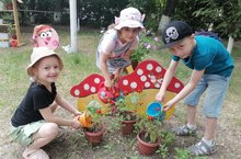 Лето – самоё тёплое время года, самое долгожданное и любимое детьми. Жизнь детей в летний период наполнена праздниками, развлечениями, играми, смехом и весельем. Однако наши воспитанники с такой же радостью и помогают взрослым. На участке нашего детского сада есть огород. Огород в детском саду является одним из условий, которое необходимо для осуществления экологического и трудового воспитания детей. Его наличие способствует контакту ребенка с объектами природы, знакомит дошкольников с сезонными изменениями. Дети имеют возможность наблюдать за развитием растений, знакомиться с их названиями и признаками внешнего вида, приобретать навыки полива и ухода. Таким образом они осознают роль природы в жизни человека. Ещё это посильный совместный труд детей, который дает возможность научиться ответственности, способствует объединению детского коллектива, сохранению и укреплению здоровья ребят. Также нашим воспитанникам очень нравится ухаживать за цветниками. Вместе с воспитателями они высжаживают их, бережно поливают и радуются их красочному цветению.