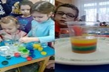 В старшей группе нашего детского сада Вафина Юлия Дмитриевна – воспитатель первой квалификационной категории ведет занятия по познавательно-исследовательской деятельности, где наши воспитанники проводят эксперименты и на собственном опыте постигают тайны законов физики. Вот и сегодня у них получилась чудесная радуга в стакане, процессе создания которой, дети научились отличать плотность веществ – компонентов опыта и их особенности.