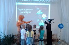 К ребятам в гости пришли герои детского конкурса «Повелители непогоды»- «Светик» (Сафиулиина Т.А. ) - очень положительный, добрый, отзывчивый, всегда готовый прийти на помощь и «Непогодка» (Мубаракшина Э.М.)- хитрая и вредная, которая делает всё неправильно, строит забавные козни и шутки, не соблюдает ПДД.