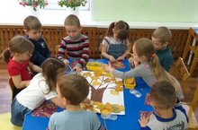 Воспитанники старшей группы не любят скучать, вместе играют, слушают сказки, постепенно входят в мир новых знаний и умений. Так, прежде чем выполнить совместную аппликацию, дети на прогулке собрали листочки, просушили и подготовили к дальнейшей работе. в результате получилась очень красивая картина. Воспитанникам важно видеть продукт своей деятельности, получить мотивацию в начале занятия и конечно похвалу. А совместная организованная работа позволяет сплотить детский коллектив, формирует навыки коллективного творчества, умение взаимодействовать друг с другом.
