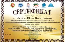 1 и 2 марта заведующая МАДОУ № 75 Артёменко Юлия Вячеславовна приняла участие в работе Международной научно-практической конференции "Преемственная система инклюзивного образования: профессиональные компетенции педагогов"