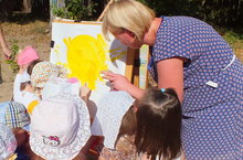 Сегодня воспитатель Жукова Юлия Викторовна провела для воспитанников младшей и ясельной групп познавательное развлечение "В гости к солнышку". Малыши играли в интересные игры со сказочными персонажами, вспомнили потешки и песенки, пускали мыльные пузыри и даже нарисовали ладошками замечательную картину!