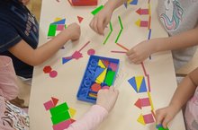 В рамках реализации проекта "Лапа дружбы" Дети составляли из геометрических фигур составляли различныех животных также были провеены Дидактические игры «Животные и их детеныши» и др. Пальчиковые игры про животных.