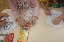 В Рамках реализации проекта "Лапа дружбы".Дети нашего детского сада слушали сказку "Айболит" затем дети раскрасили рисунки по данному произведению