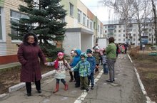 18.04.2017 года в 10:00 сработала пожарная сигнализация. Очаг возгорания находится под лестницей на первом этаже в правом крыле здания. Возгорание обнаружила помощник воспитателя Жукова Л.Я. Заведующая детским садом Ганеева Л. Ф сообщила, в пожарную часть по телефону. Музыкальный руководитель Фахретдинова А.Р использовала огнетушитель. Дети были эвакуированы согласно плану эвакуации и были отведены в соседний детский сад № 334.