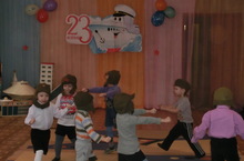В детском саду прошло развлечение, посвященное Дню защитника отечества. Дети всех возрастных групп принимали активное участие: пели, соревновались, рассказывали стихи.