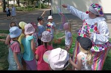"День воды и мыльных пузырей" зажигательно прошел для наших ребят. Клоун Клепа совсем не дпавал скучать!