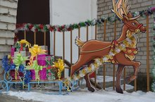 Все сотрудники детского сада и родители украсили интерьеры детского сада к новогодним праздникам. Вот Олень Деда Мороза везёт в саночках подарки, а вот ёлочка нарядилась к празднику, а у входа - новогодние гирлянды переливаются цветными огоньками. Скоро, скоро, Новый год!