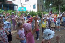 В празднике участвовали воспитанники всех групп. Малыши принимали участие в народных играх и национальных состязаниях: донеси яйцо, бег на лошадях; старшие состязались в том, кто аккуратнее перенесёт вёдра с водой, перетягивании каната, беге в мешках. Дети продемонстрировали свою ловкость, быстроту. Болельщики от души подбадривали участников бурными аплодисментами. Все получили море удовольствия! - Выпуской бал 29.05.2014